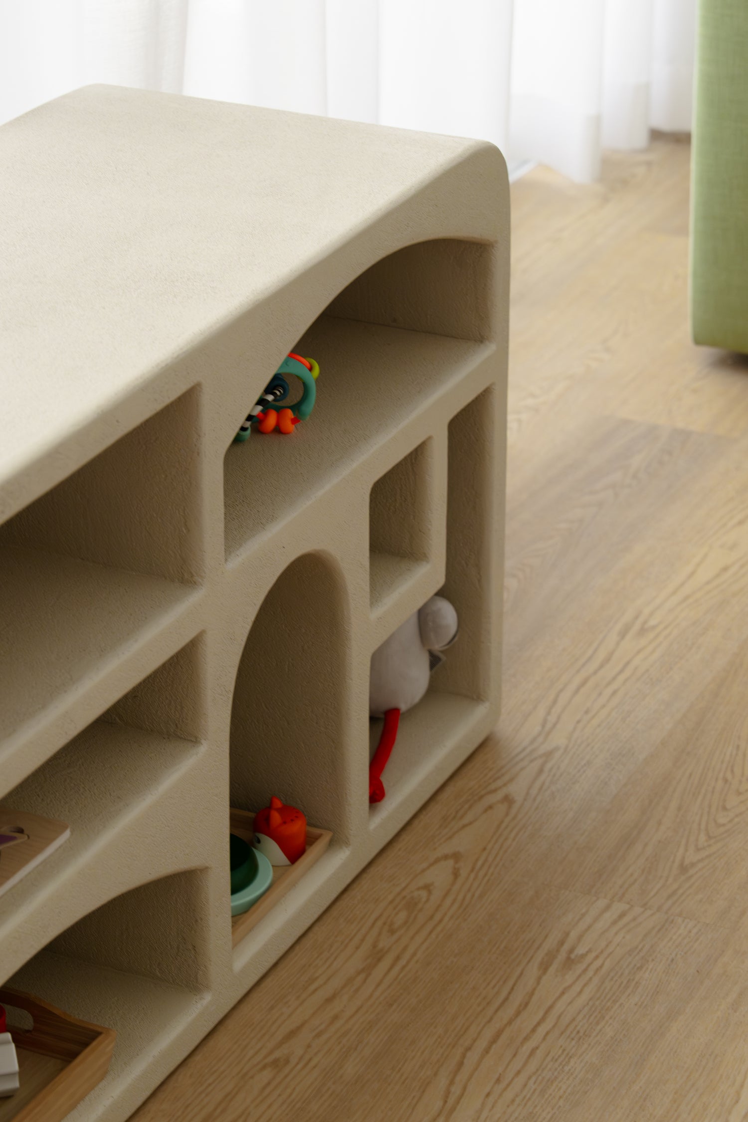 Practical and stylish TV cabinet with toy storage, ideal for families with young children.